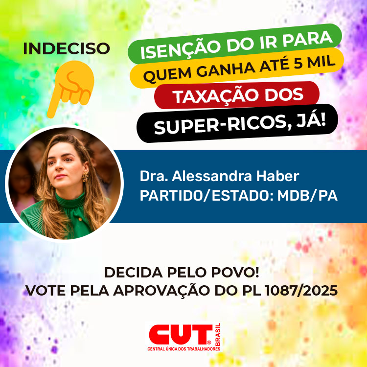 Isenção do IR para quem ganha 5 mil e taxação dos super-ricos já! Pela aprovação do PL 1087/2025