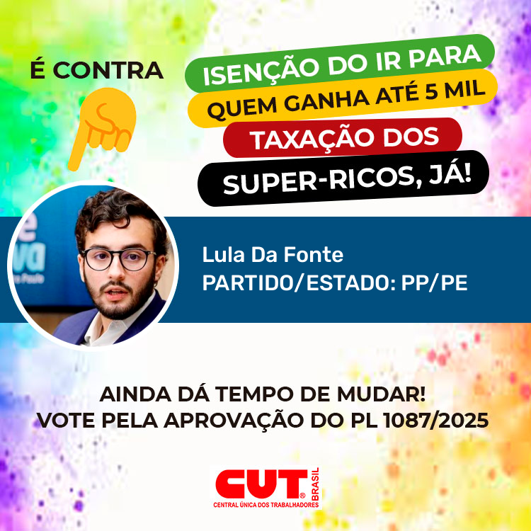 Isenção do IR para quem ganha 5 mil e taxação dos super-ricos já! Pela aprovação do PL 1087/2025