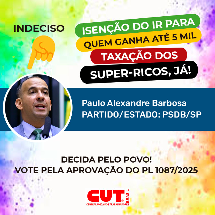 Isenção do IR para quem ganha 5 mil e taxação dos super-ricos já! Pela aprovação do PL 1087/2025