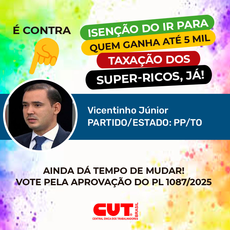 Isenção do IR para quem ganha 5 mil e taxação dos super-ricos já! Pela aprovação do PL 1087/2025
