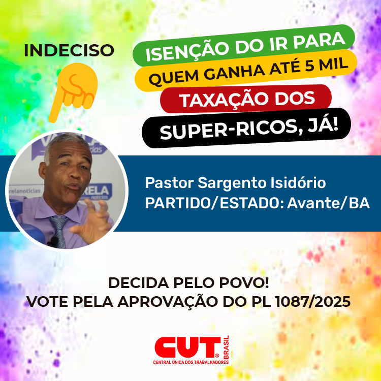 Isenção do IR para quem ganha 5 mil e taxação dos super-ricos já! Pela aprovação do PL 1087/2025