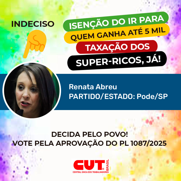 Isenção do IR para quem ganha 5 mil e taxação dos super-ricos já! Pela aprovação do PL 1087/2025